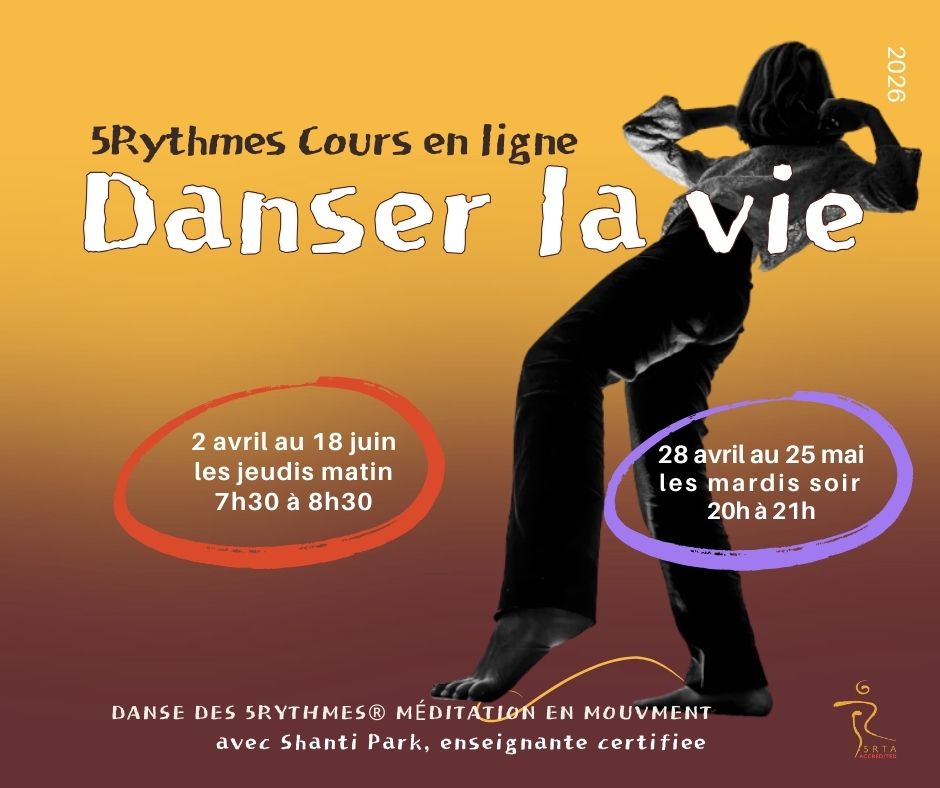 On explorera par la danse notre chemin personnel, en y suivant l’invitation à nous retrouver dans les 5Rythmes: